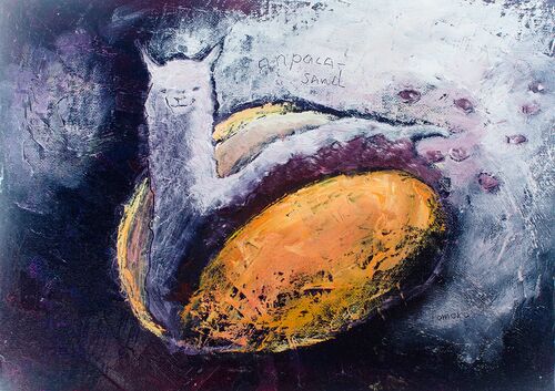 あんバターサンドに、アルパカが挟まったあんパカーサンドのイラストを描いてみました。